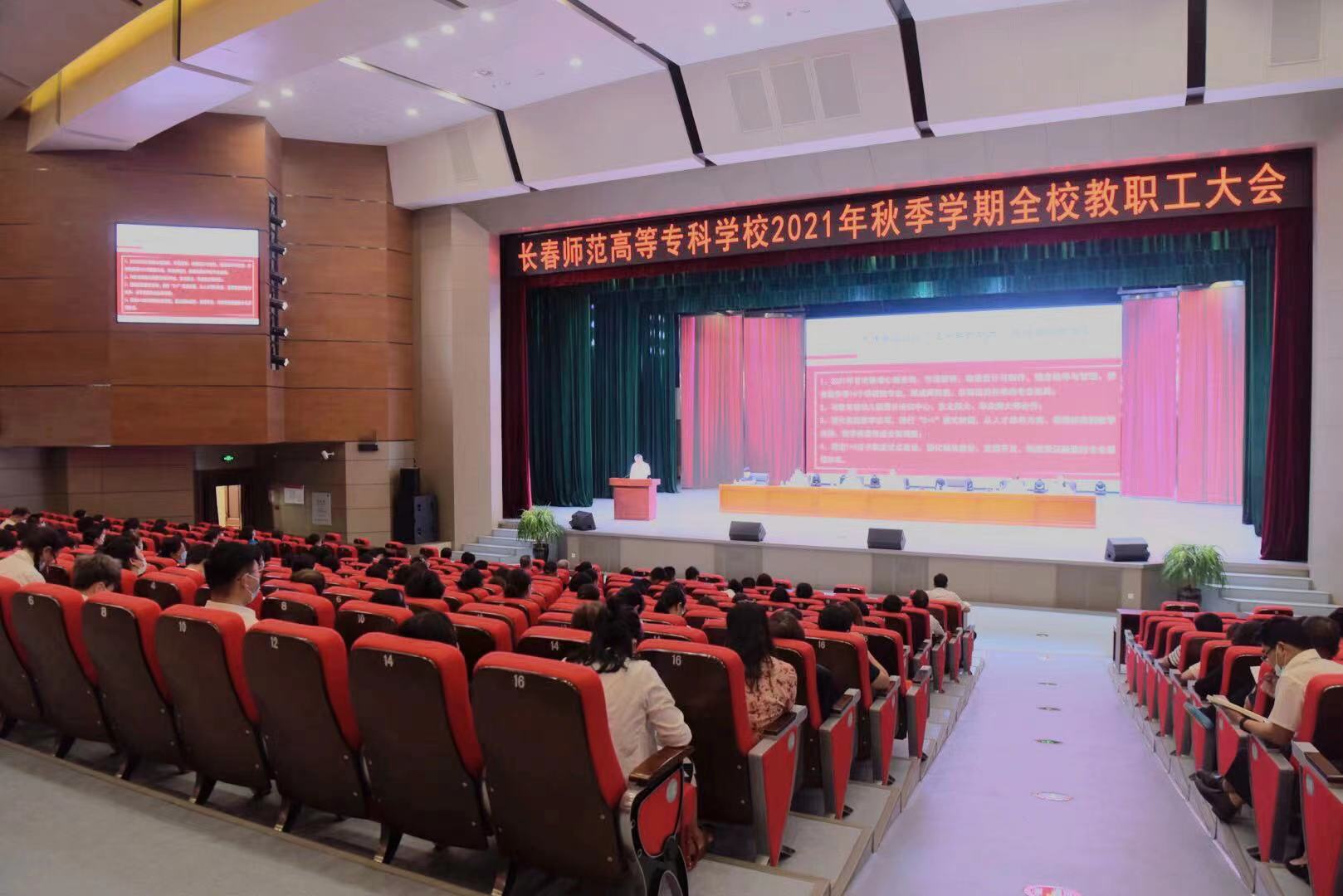 2021年8月24日上午,我校在艺术中心召开秋季学期全校教职工大会。校党委书记崔国涛,党委副书记、校长姜国权,党委委员、纪委书记张建村,党委委员、副校长史书华,党委委员、副校长刘海涛及全校教职工出席会议。会议由崔国涛主持。